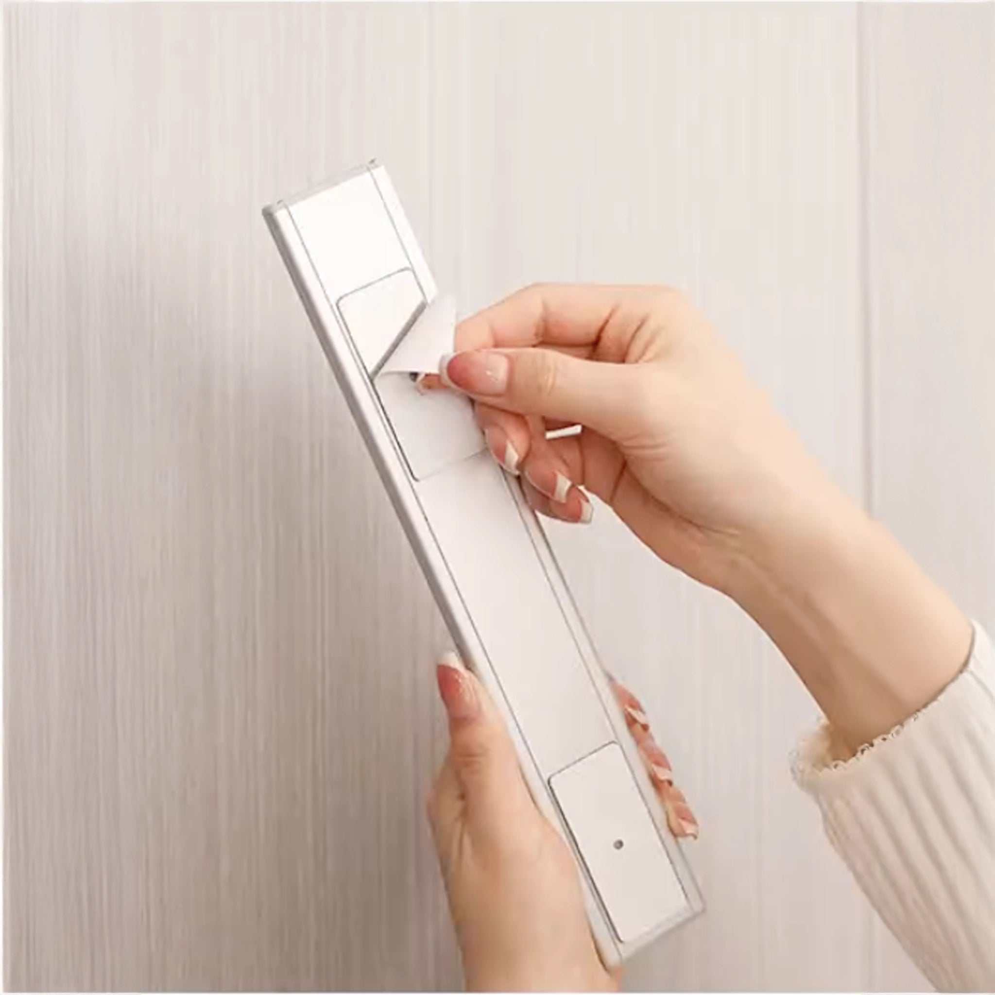 Aimantez la barre LED sur le support, sélectionnez la teinte et activez le mode détecteur. Vérifiez l’allumage au passage ; rechargez en USB-C si nécessaire.